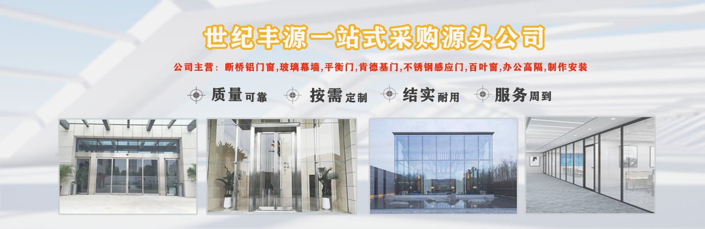 天津世紀豐源門窗有限公司從事斷橋鋁門窗,玻璃幕墻,平衡門,肯德基門,不銹鋼感應門,百葉窗,辦公高隔,制作安裝一站式訂制生產(chǎn)及配套服務等?! 」咀猿闪⒁詠?,始終堅持以人才為本、誠信立業(yè)的經(jīng)營原則,薈萃業(yè)界精英,成熟的技術、管理方法及企業(yè)經(jīng)驗與國內(nèi)企業(yè)的具體實際相結合,為企業(yè)供給各個方面的解決方案,使企業(yè)在激烈的市場競爭中始終堅持競爭力,實現(xiàn)企業(yè)快速、穩(wěn)定地發(fā)展。 質(zhì)量好、服務好、才能信譽好,公司已在諸多領域取得輝煌成績,愿意成為您可信賴的長期合作伙伴?! ∽屛覀償y手同行,共同實現(xiàn)“讓普通老百姓都用得上高端門窗”...